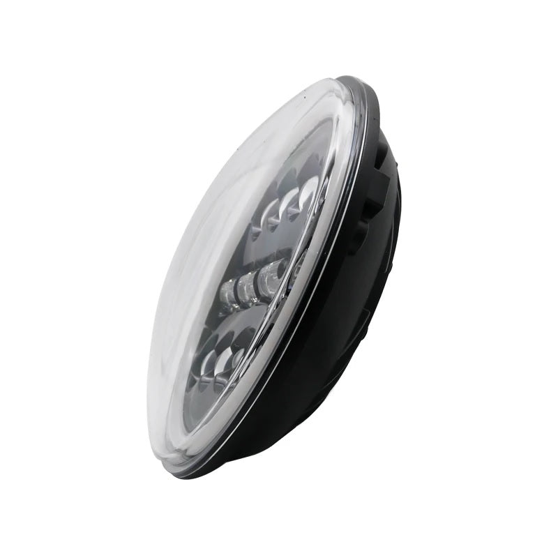 Универсален 7 инча 18см ЛЕД LED фар лампа халоген 12V-24V къси/дълги с DRL дневни светлини мигач бяло-жълто 4800lm за АТВ джип мотоциклет камион трактор и др.